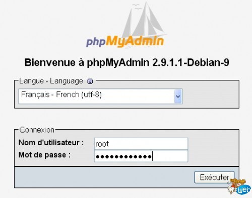 Un bon test 3 en 1 qui va nous permettre de voir si PHP, MySQL et phpMyAdmin sont correctement installés. Faire un lien symbolique ln -s /usr/share/phpmyadmin /var/www Ouvrez votre navigateur, tapez l'adresse suivante: http://IP_SERVEUR/phpmyadmin/